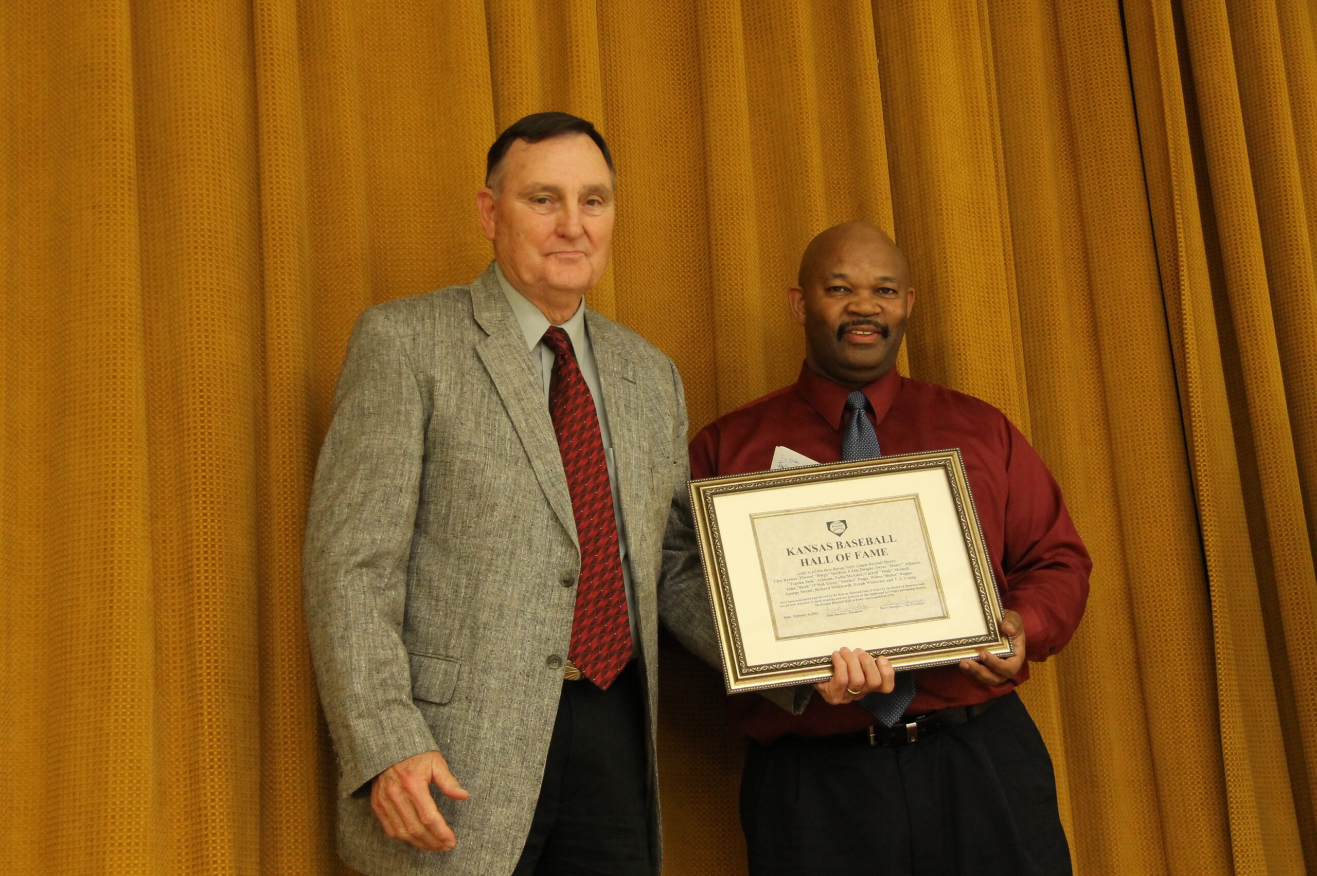 2012 Banquet (2011 Inductees): 14 Negro Leagues Players Accepted by Phil Dixon, Dave Bingham, Darren Dreifort, Bob Homolka, Arky Vaughan, 2010 Inductee Lee Stevens