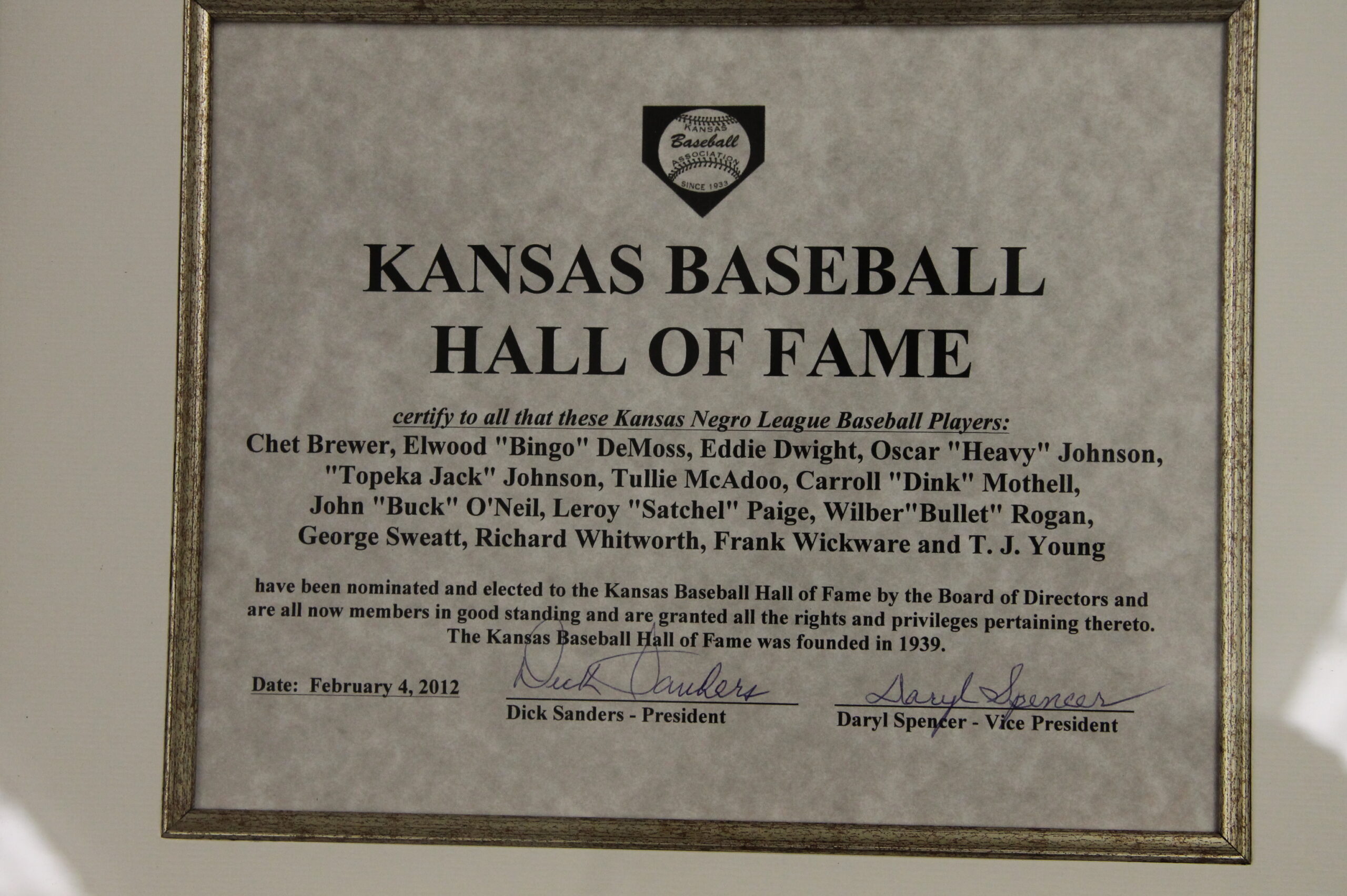 2012 Banquet – 2011 Inductees – Bingham, Dreifort, Homolka, Stevens, Vaughan, Negro Leagues Players
