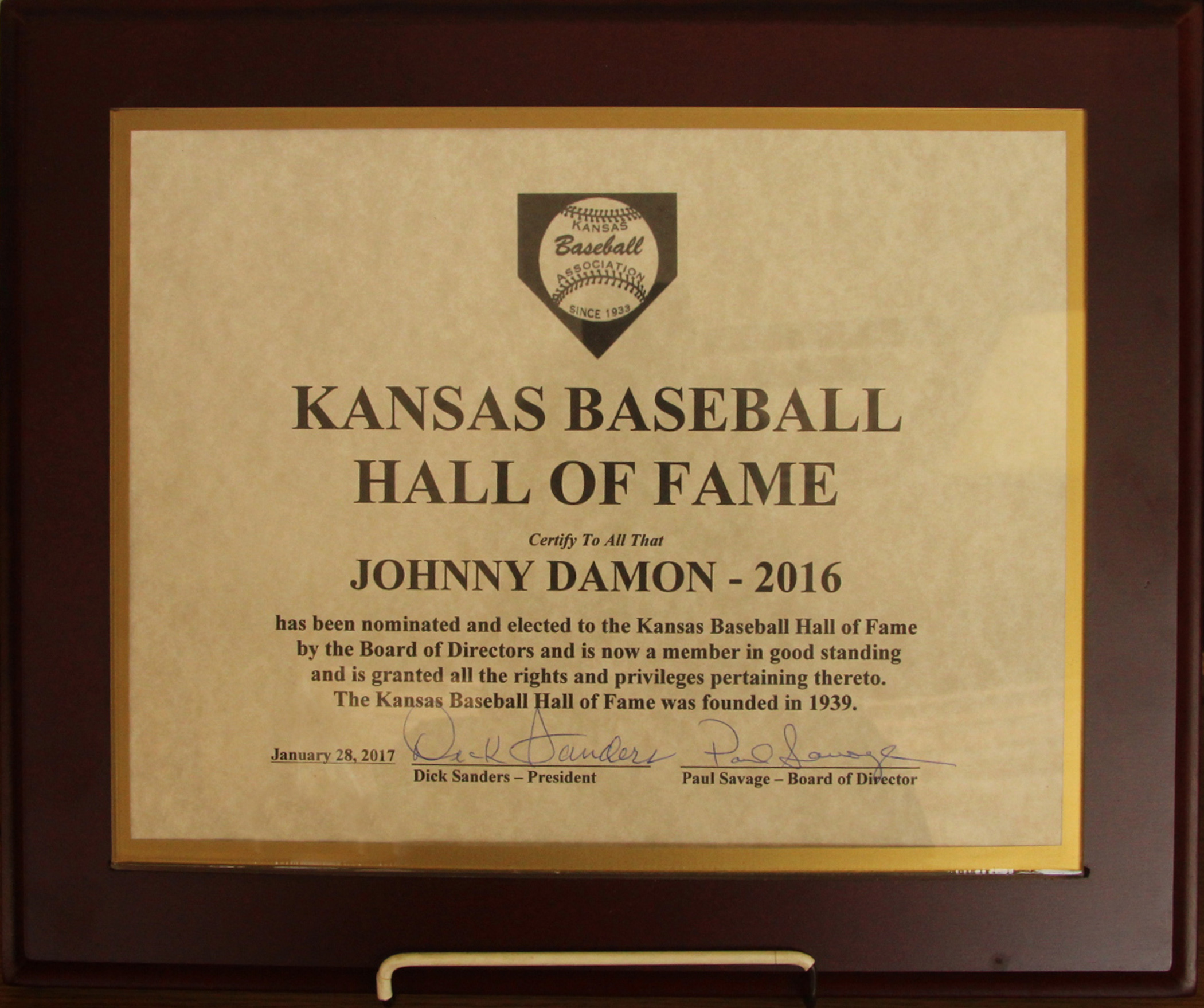 2017 Banquet (2016 Inductees): Johnny Damon, Kevin Hooper, Dave LaRoche, Ray Mueller, Bob Rives, Steve Ruud, Joe Slobko