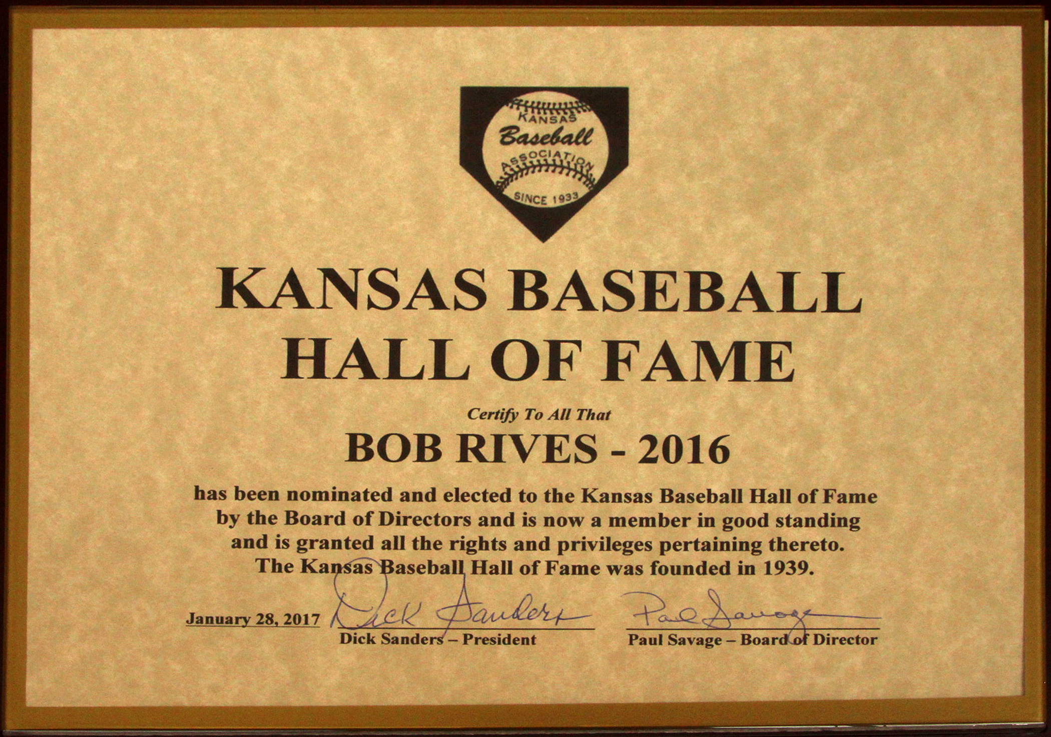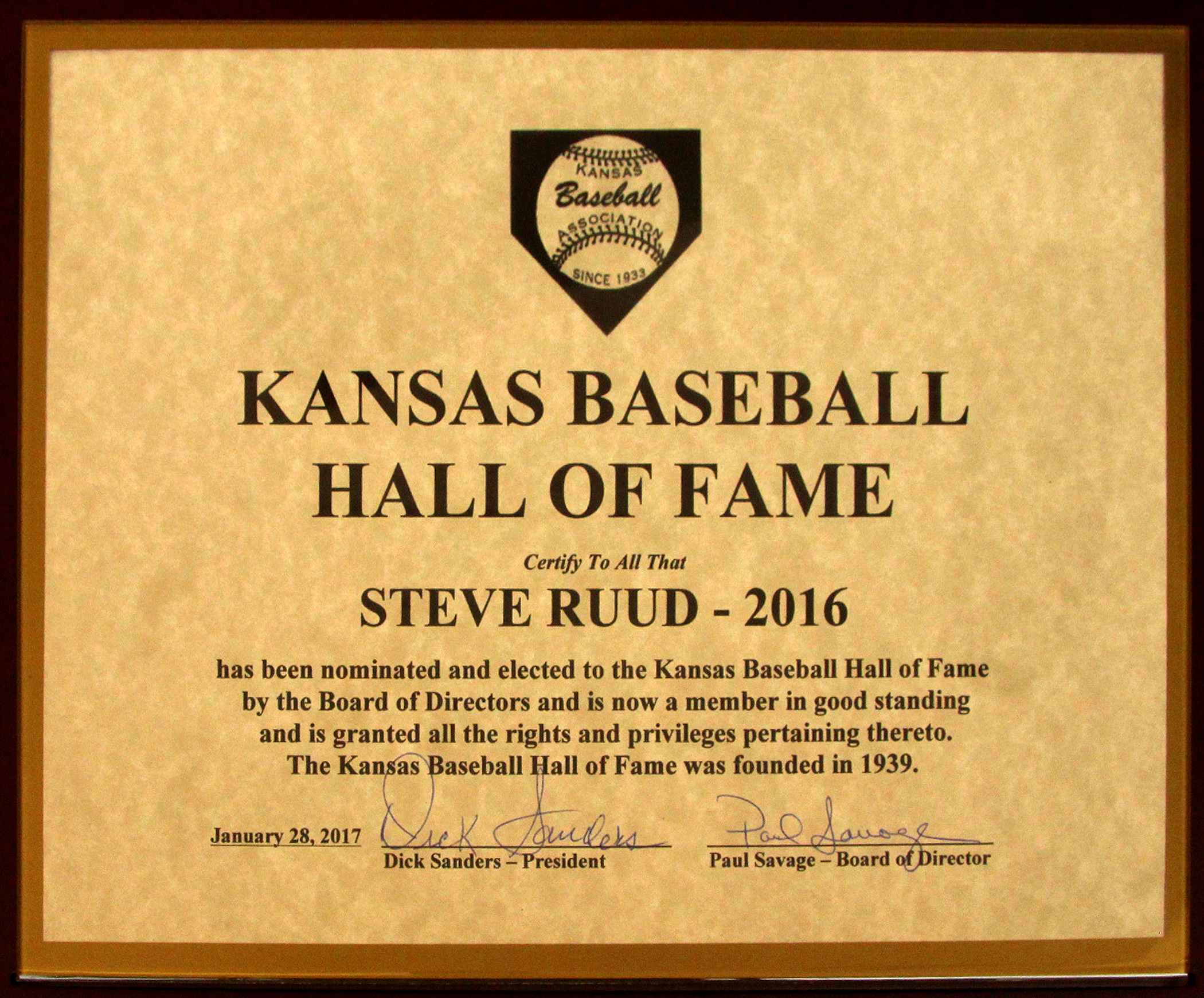 Honoring baseball achievement in Kansas and by Kansans.