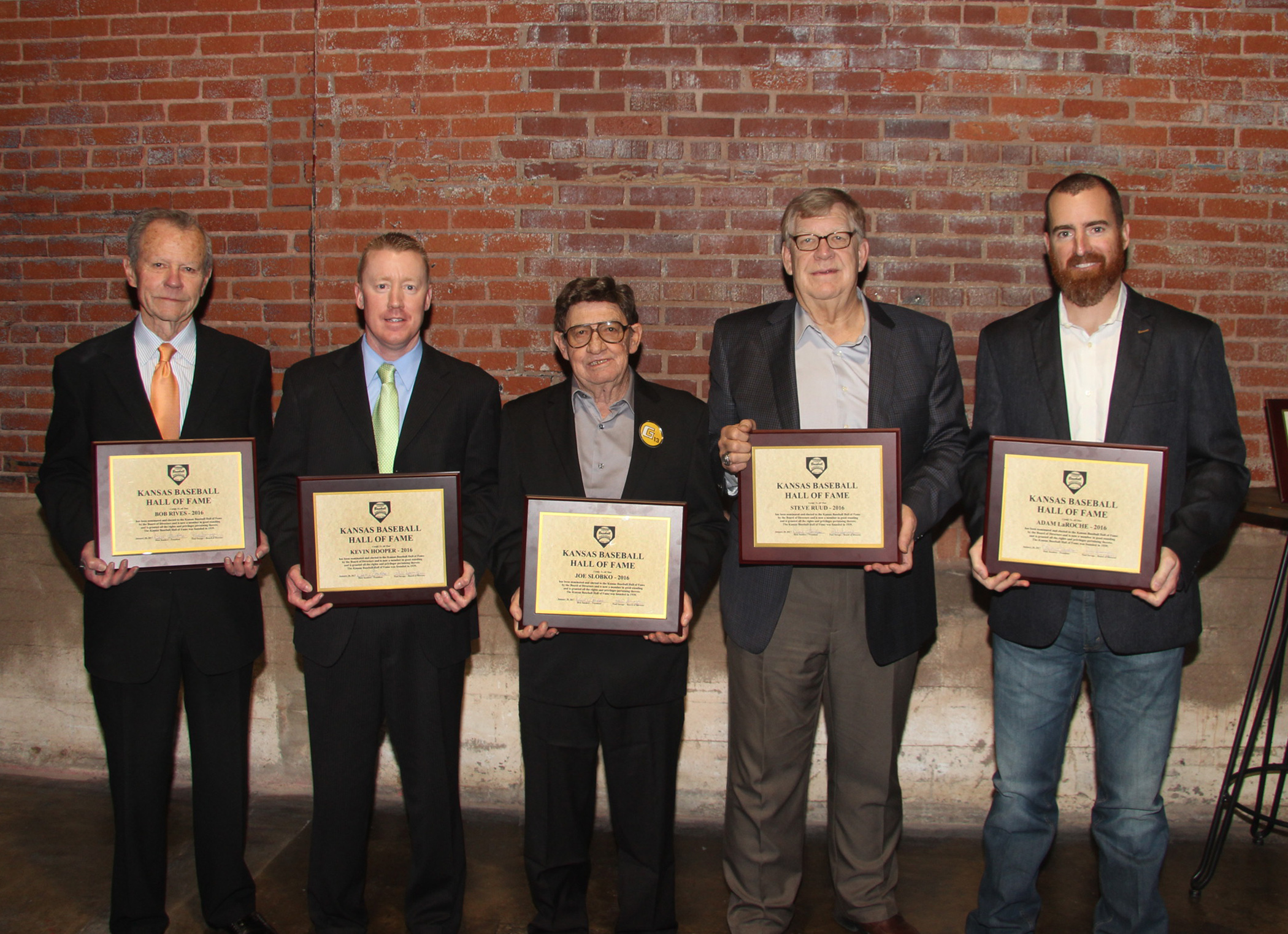 2017 Banquet – 2016 Inductees – Damon, Hooper, LaRoche, Mueller, Rives, Ruud, Slobko