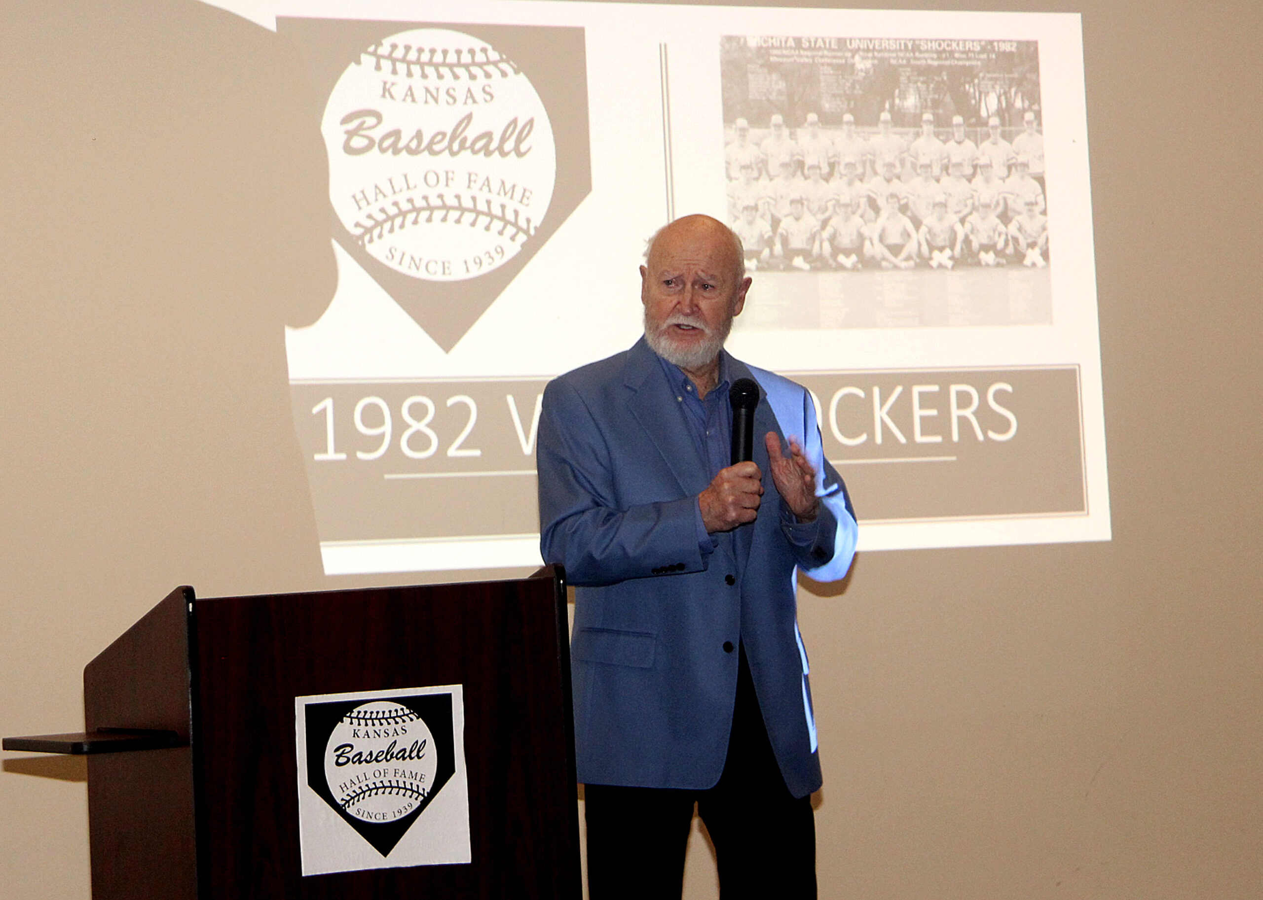 2022 Banquet (2021 Inductees): Jason Adams, Carl Hall, Pinch Thomas, Todd Tichenor, 1982 Wichita State, Guest Speaker Rex Hudler